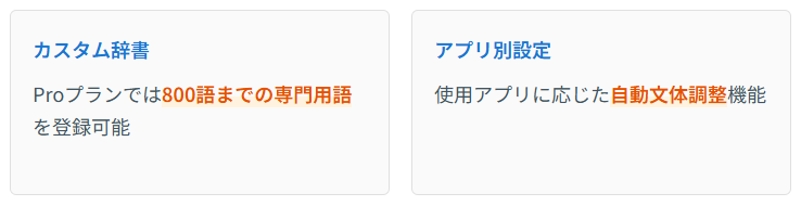 カスタム辞書:Proプランでは800語までの専門用語を登録可能