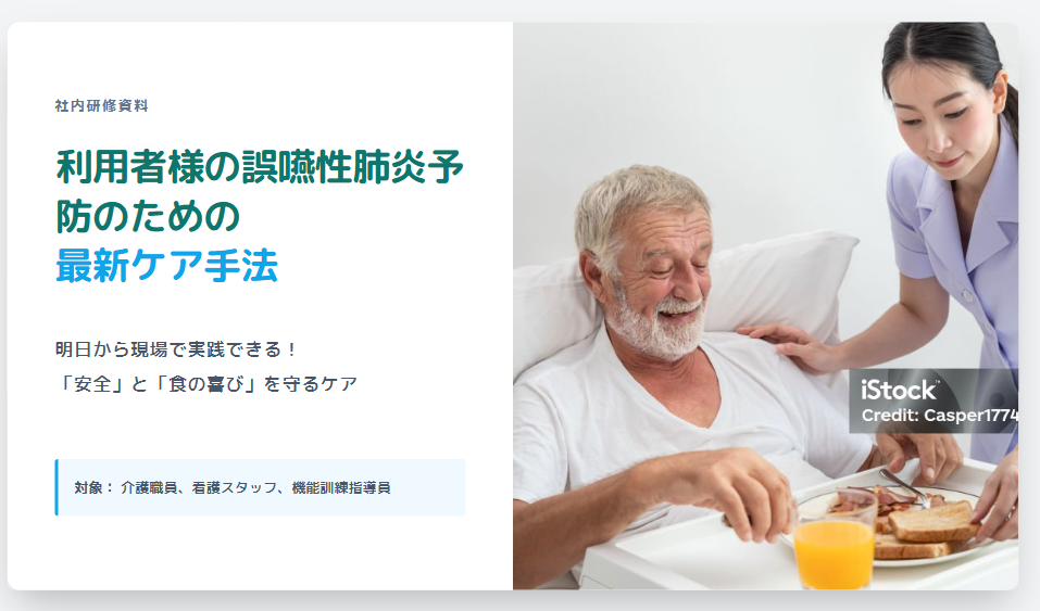 あなたはプロの医療/介護コンサルタントです。 以下の要件に基づき、「Googleスライド資料」を作成してください。 【テーマ】:[作成したいテーマを具体的に] (例:利用者様の誤嚥性肺炎予防のための最新ケア手法) 【対象者】:[資料を使う相手] (例:介護職員向け、利用者家族向け、新人看護師向け) 【目的】:[資料で達成したい行動や理解] (例:明日からケア手順を変える、危険性を理解し報告徹底する) 【スライド構成案の要件】: - タイトルを含む全10枚程度 - 各スライドに図解やイラストの候補を必ず提案すること - 親しみやすい、安心感を与えるデザインを基調とすること。